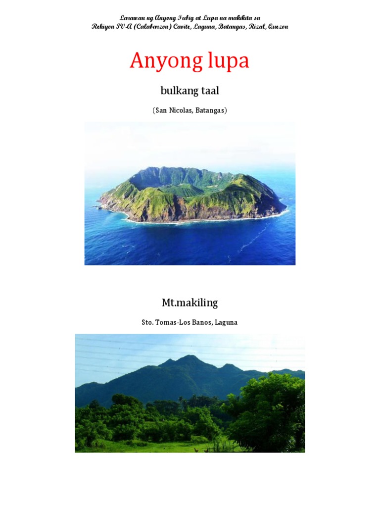 Rehiyon Iv A Calabarzon Anyong Tubig At Anyong Lupa Pdf Txt